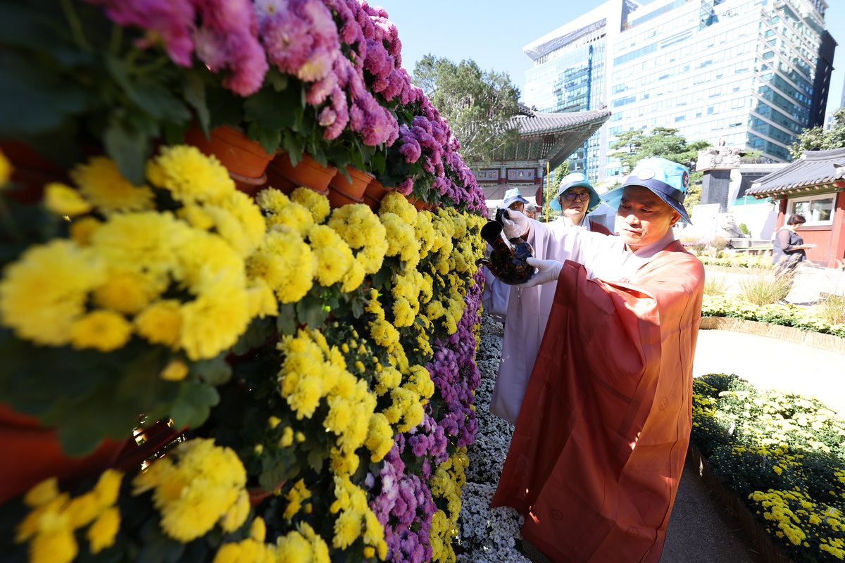 조계사는 청청수로 국화 장엄물을 적시는 점안의식을 봉행하며 제15회 국화화엄축제를 개최했다.