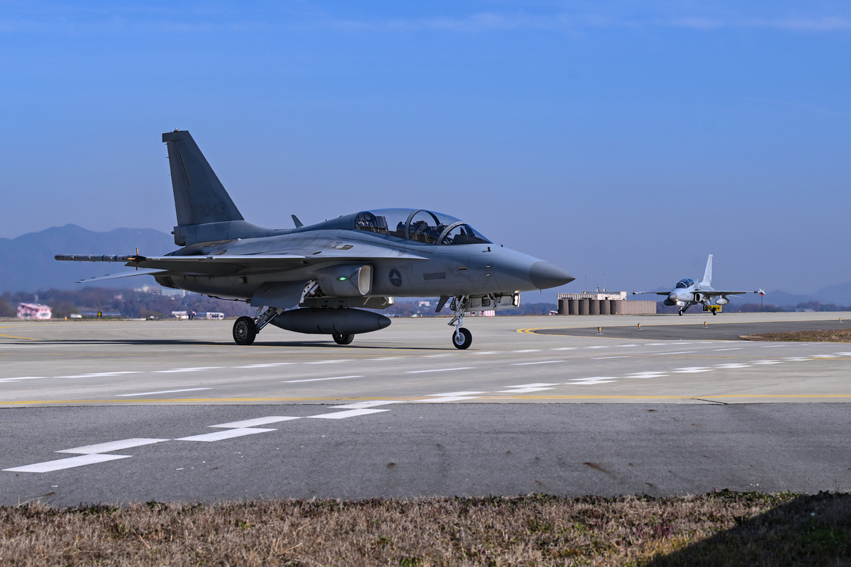 공군 FA-50 경공격기들이 훈련을 위해 활주로에서 이동하고 있다. 세계일보 자료사진