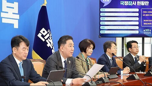 김병기 원내대표는 국정감사 대책회의에서 "이번 APEC 정상회의는 세계 경제 질서가 새롭게 재편되고 한반도 안보의 방향이 결정될 분수령이 될 회의"라며 "대한민국은 의장국으로서 이번 회의가 세계 평화와 인류 번영의 결과로 이어지도록 리더십을 발휘할 것"이라고 말했다.