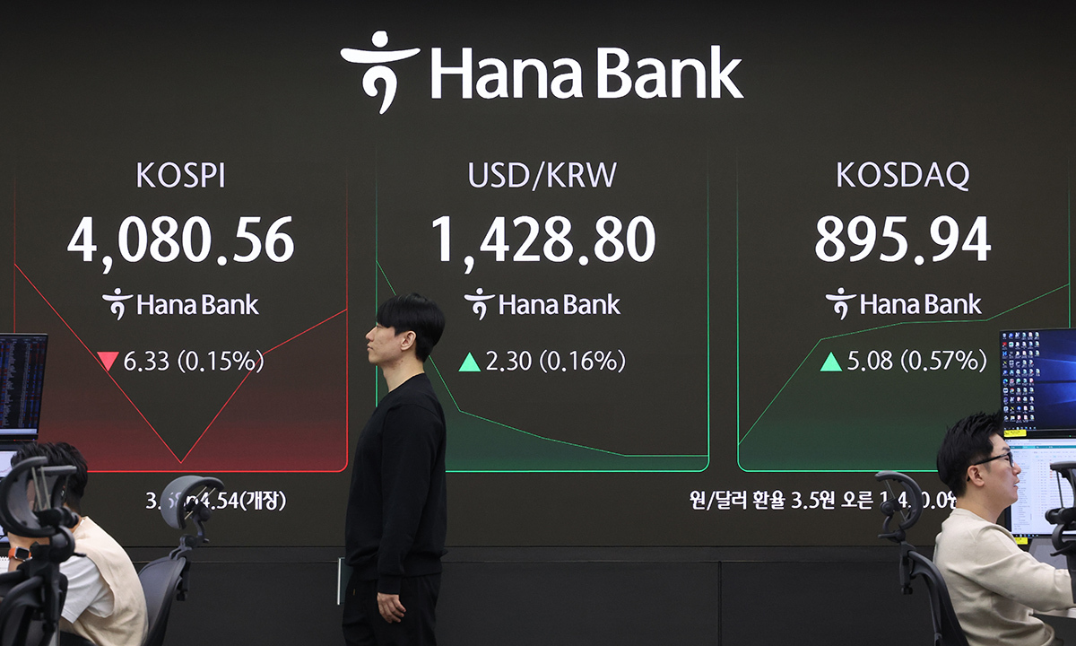 코스피는 3거래일만에 전장보다 하락 출발했다가 기관 매수세가 강해지면서 상승 전환했다. 지수는 이날 전장보다 3.64포인트(0.09%) 내린 4083.25로 출발했다가 장중 4059.74까지 떨어졌다. 오전 10시10분 현재 코스피는 4100.13을 기록하고 있다.