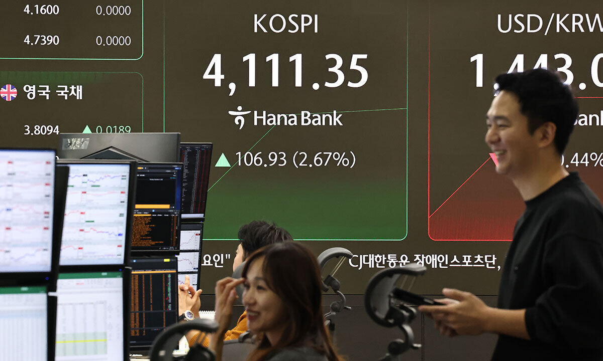 6일 오전 10시48분 기준 코스피는 전장보다 22.59포인트(0.56%) 오른 4027.01이다. 코스피는 전장보다 88.04포인트(2.20%) 오른 4092.46으로 출발해 한때 4111.96까지 올라 한때 4100선을 회복했다. 하지만 이후 외국인 매도세에 마이너스로 전환하며 3985.29를 기록하며 4000대가 깨졌다가 다시 상승 중이다.