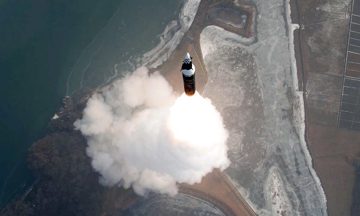 북한 미사일총국이 지난 2025년 1월 6일 신형 극초음속 중장거리 탄도미사일 시험발사를 진행한 모습. 조선중앙통신·연합뉴스
