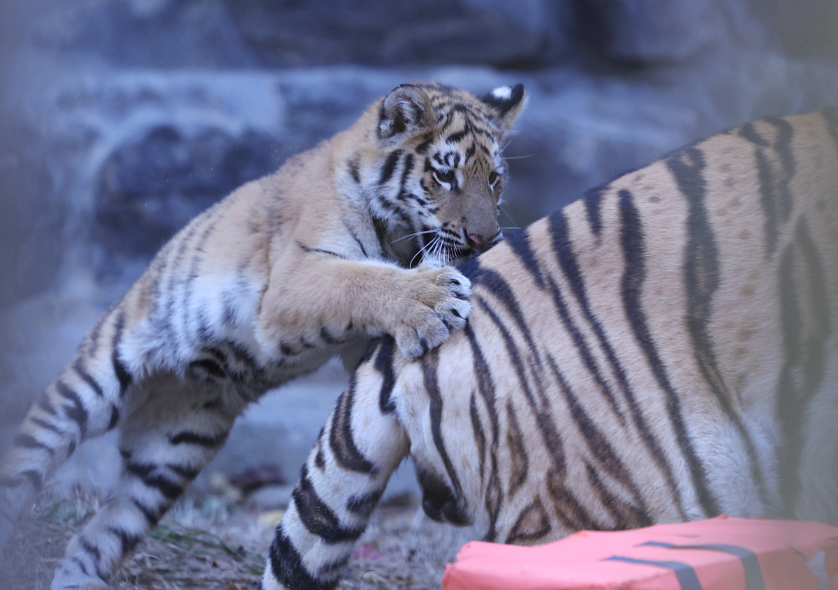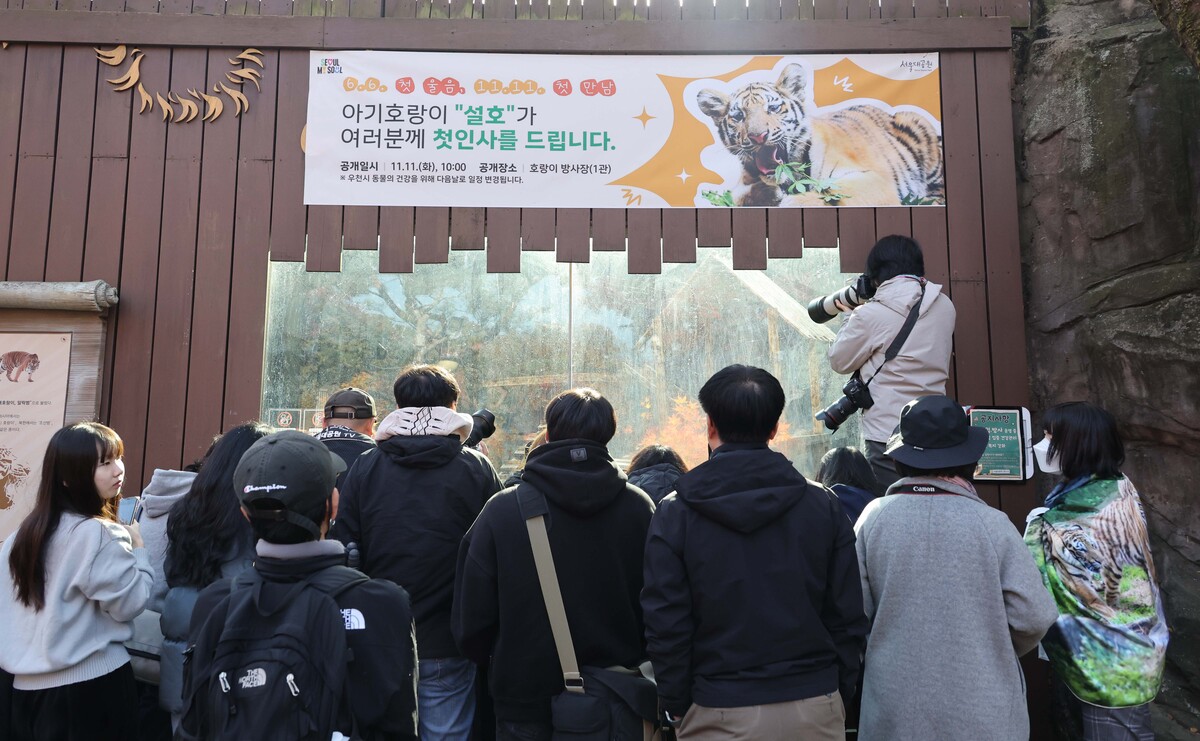 11일 경기 과천 서울대공원 동물원 호랑이사에서 탄생 159일된 암컷 시베리아 새끼호랑이 '설호(雪虎)'가 시민과 언론에 공개되고 있다.
