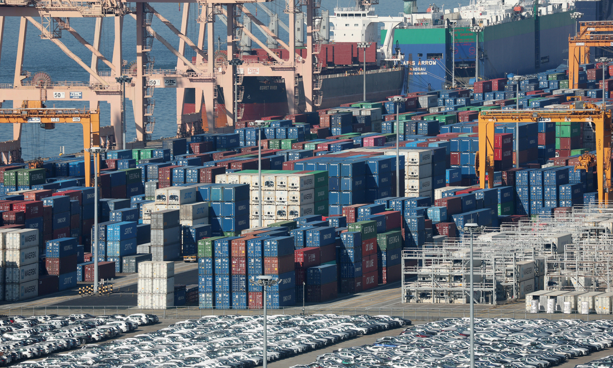 한미 양국이 14일 통상·안보 협상의 결과물인 '조인트 팩트시트'(공동 설명자료)를 발표했다. 사진은 이날 경기 평택시 포승읍 평택항에 수출용 컨테이너들이 쌓여있는 모습. 뉴스1