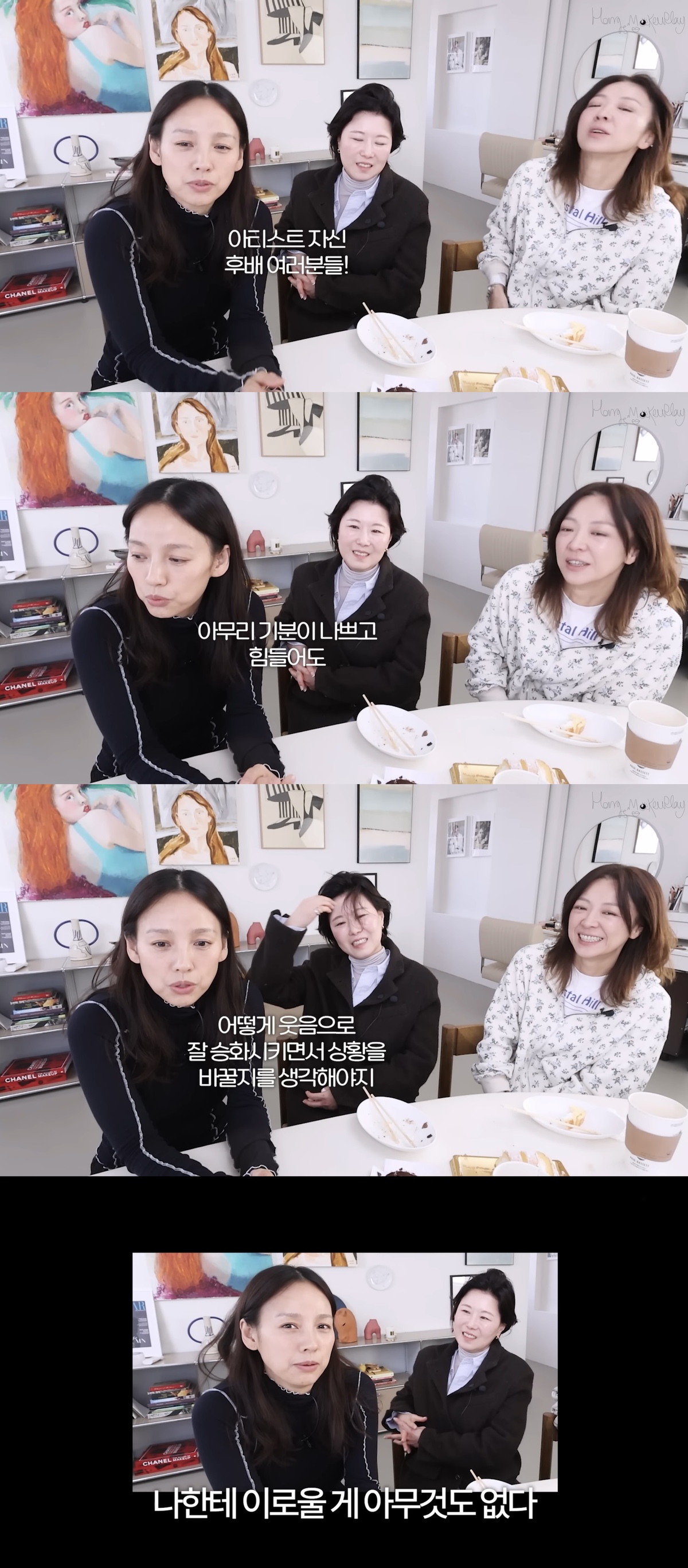 또한 그는 후배 아티스트들에게도 메시지를 전했다. “아티스트 자신, 후배 여러분들. 아무리 기분 나쁘고 힘들어도 그걸 어떻게 웃음으로 잘 승화시키면서 상황을 바꿀지를 생각해야지. 나한테 이로울 게 하나도 없다”며 촬영 현장 태도의 중요성을 강조했다.