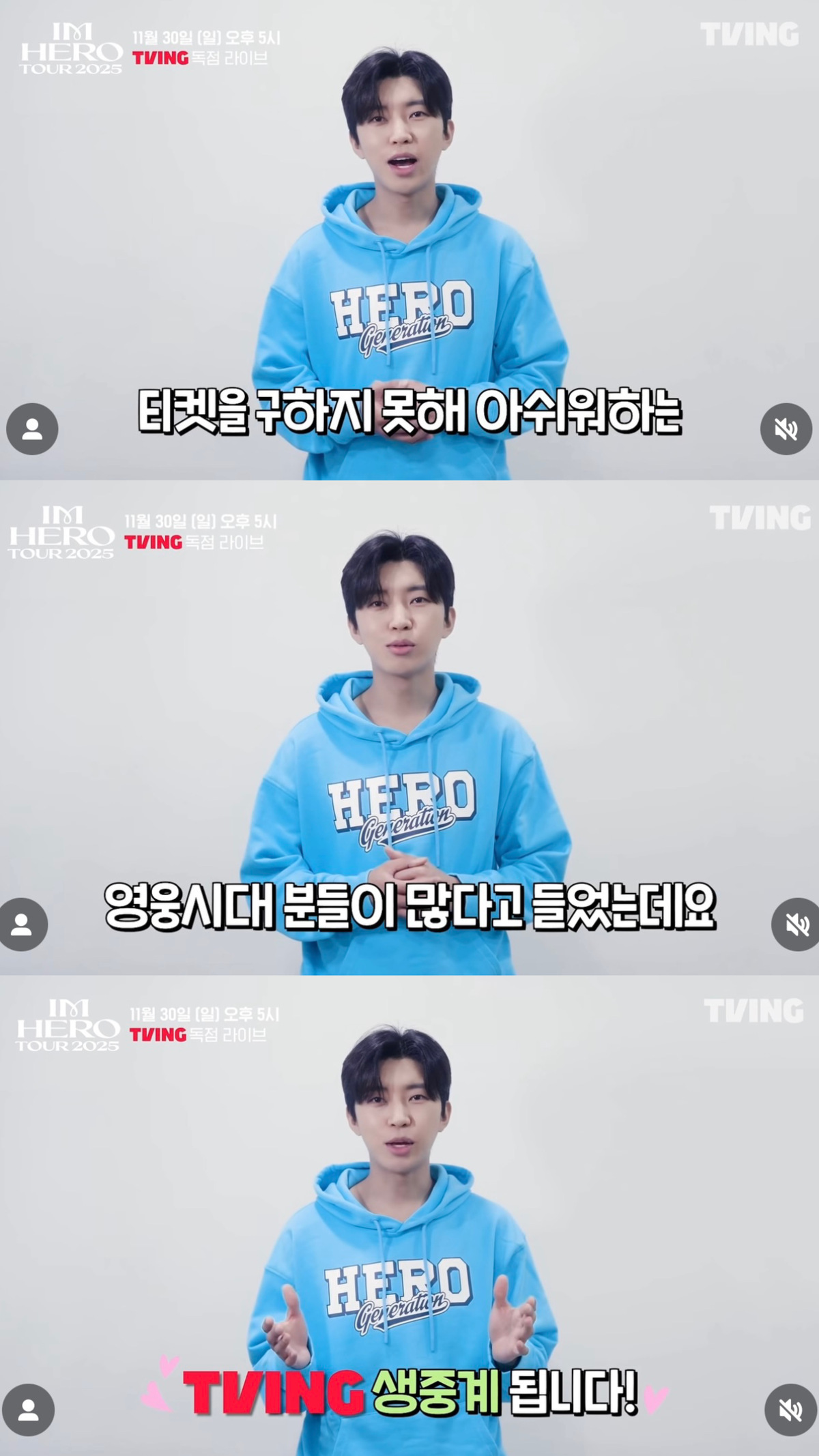가수 임영웅이 전국투어 ‘IM HERO TOUR 2025’ 서울 공연의 생중계 소식을 알렸다.