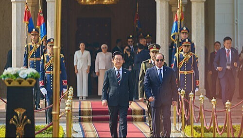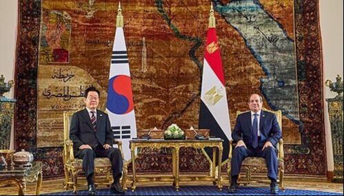 이어 "저도 이집트가 가자지구 휴전과 재건, 나아가 중동 평화를 위해 노력하고 있음을 높이 평가했으며 한국 정부도 가자 난민이 겪는 인도적 위기를 해결하기 위해 이집트와 계속 협력하겠다는 의사를 전했다"며 "양국은 서로의 역할을 지지하며 동시에 국제평화를 위해 연대하기로 했다"고 설명했다.