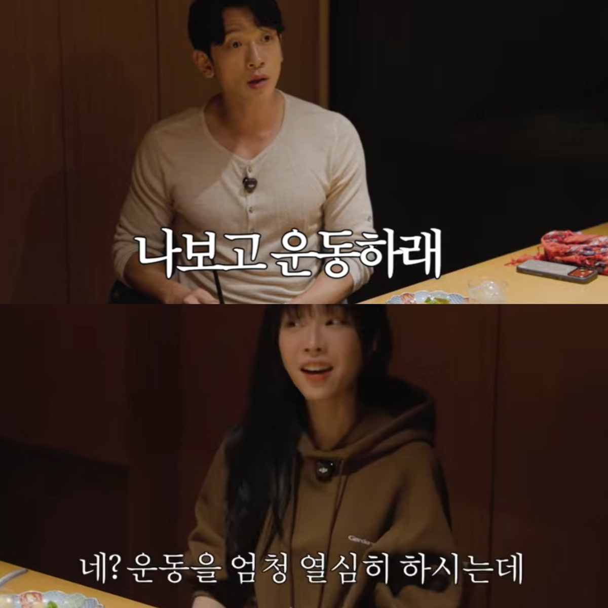 둘은 만나서 과거 ‘경복’에서 술을 마셨던 경험을 되새겼다. 먹기 위해 운동하는 비는 “억울하다”며 쯔양에게 “너는 술도, 밥도 많이 먹는데 대체 뭐냐”며 토로했다.
