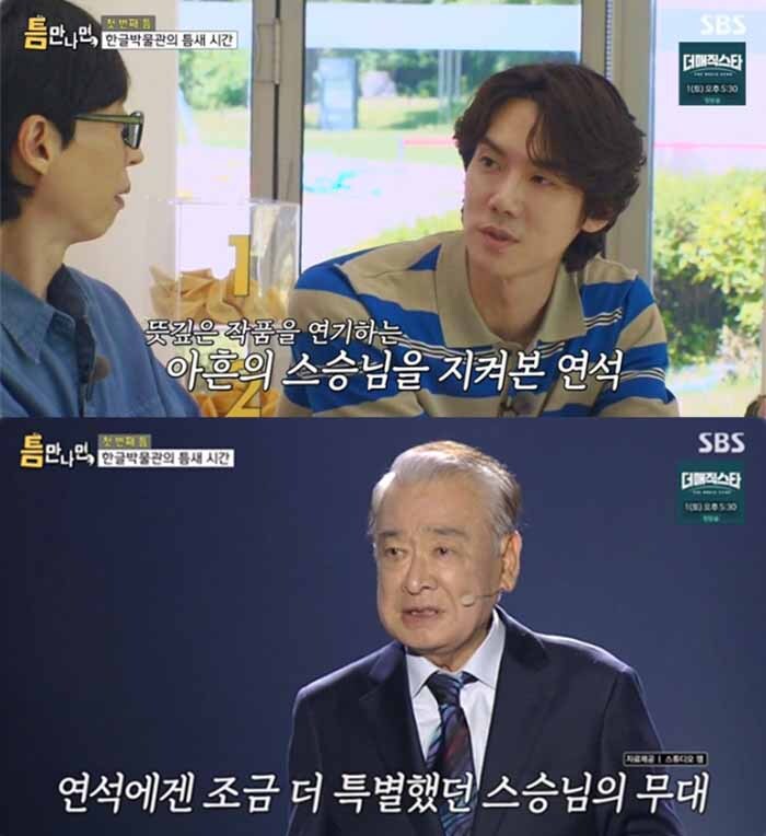 유연석은 “이순재 선생님이 대학교 은사님이다. 백상에서 특별 무대로 연극 ‘리어왕’의 대사를 읊으셨는데, 제가 대학교 3학년 ‘리어왕’ 공연을 할 당시 지도 교수님이셨다”라며 특별한 사제지간임을 언급했다.