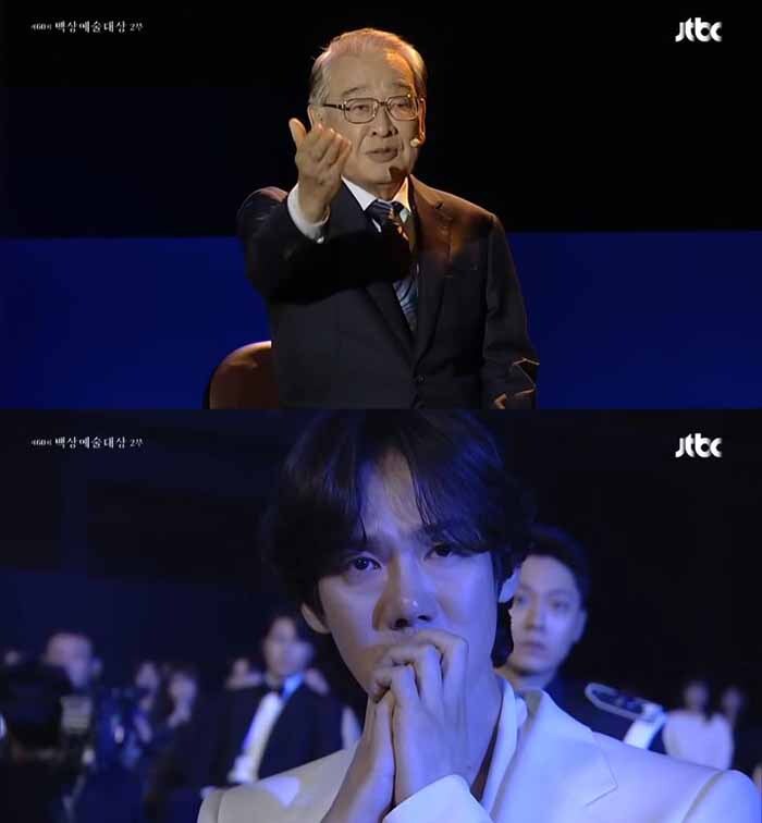 유연석은 이어 “방송에서 같이 작품을 할 때도 조언을 정말 많이 해주셨다. 저에게는 또 한 분의 ‘김사부’님이시다”라고 존경을 표하며 “한데 선생님이 아흔이 되셔서 백상 무대에서 대사를 하시고 저는 객석에서 바라보는데 너무 감동적이기도 하고 많은 것들이 스쳐 지나가서 한참을 울었다”라며 눈물을 보일 수밖에 없었던 이유를 공개했다.