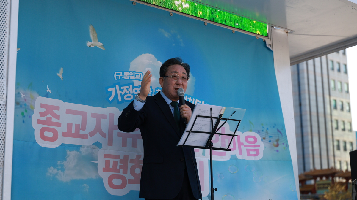 세계평화통일가정연합(가정연합) 부산·울산교구가 지난 30일 부산역 광장에서 ‘종교자유를 위한 한마음 평화집회’를 개최했다. 최근 사회 일각에서 종교 관련 오해와 갈등이 이어지는 가운데 종교의 자유를 호소하고 지역사회와의 소통 의지를 밝히기 위해 마련된 행사다.