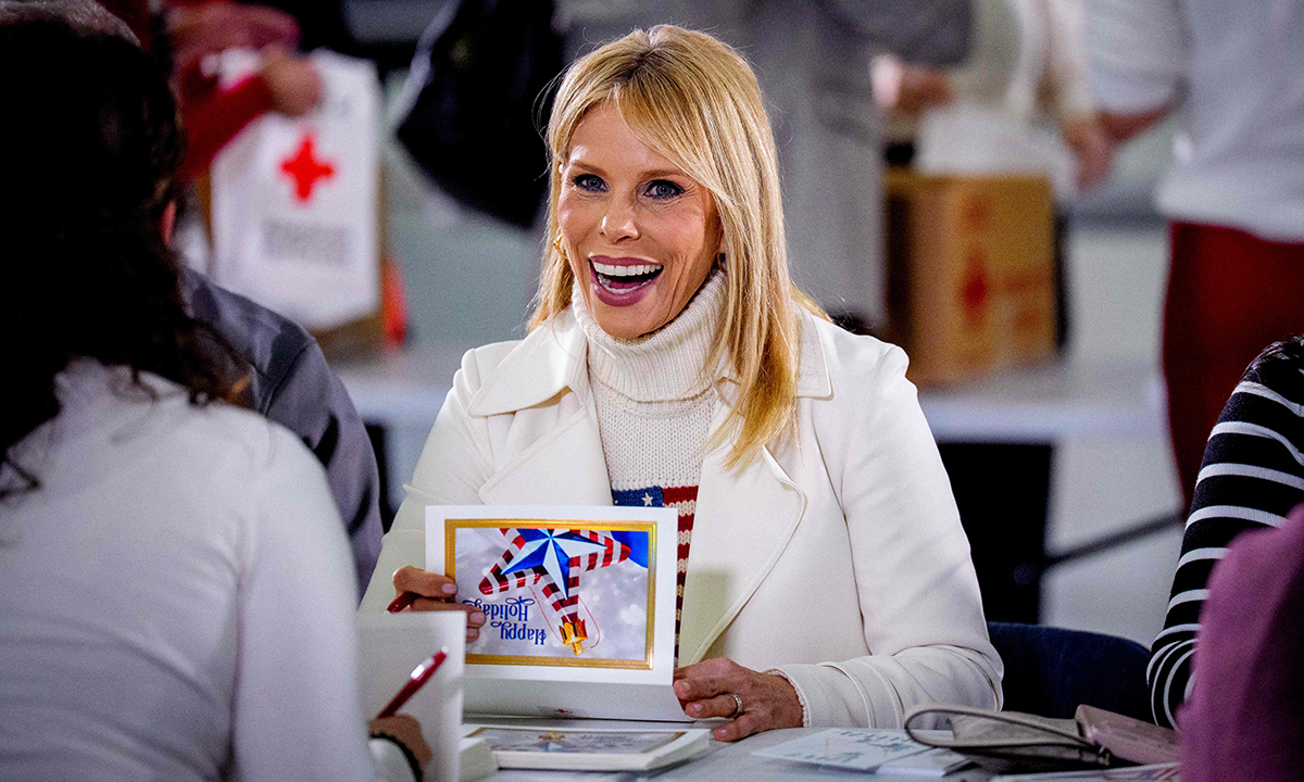 미국 영화배우이자 로버트 케네디 주니어 보건복지부 장관의 부인인 셰릴 하인즈가 1일(현지시간) 군 부대에서 장병 및 그 가족들을 대상으로 봉사 활동을 하고 있다. 이날 행사는 도널드 트럼프 대통령 부인 멜라니아 트럼프 여사가 성탄절을 앞두고 주최했으며 부통령 및 장관 부인들이 대거 동참했다. AFP연합뉴스