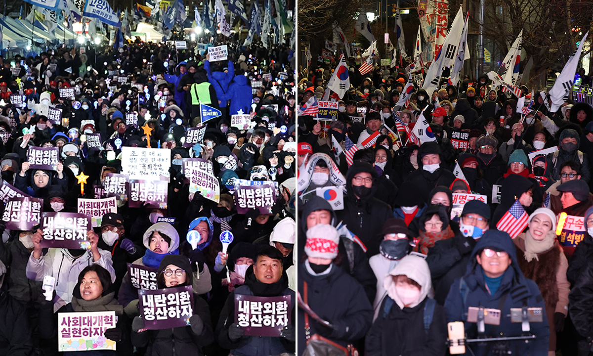 “내란 청산” vs “계엄 정당”… ‘계엄 1년’의 밤, 국회 앞 맞불집회 [밀착취재]