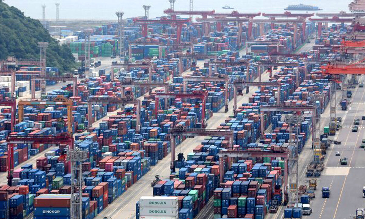 부산항 신선대부두 야적장에 컨테이너가 가득 쌓여 있다. 뉴스1