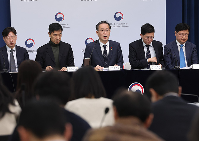 이형일 재정경제부 1차관이 지난 5일 정부세종청사 브리핑룸에서 올해 경제성장전략에 대해 설명하고 있다. 연합뉴스