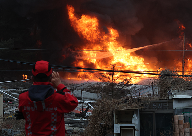 불이 야산으로 확대되지 않도록 대응 단계를 올리고 인력을 추가 투입했다는 것이 소방 측 설명이다. 현재 불은 구룡마을 5지구로도 번지고 있는 것으로 파악됐다.