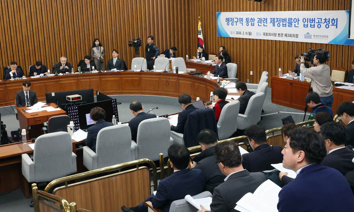 정부와 여당이 추진 중인 광역자치단체의 행정통합에 가속도가 붙고 있다. 국회 행정안전위원회는 어제 대전·충남과 대구·경북, 광주·전남 관련 행정통합 법안을 묶어 입법공청회를 열었다. 더불어민주당은 2월 국회 처리를 공언했다. 행정통합은 소멸위기에 처한 지방을 살리고 국가 경쟁력을 높이는 차원에서 반드시 가야 할 길이다. 6·3지방선거가 행정통합의 계기를 제공한 것도 사실이다. 하지만 국가의 미래가 걸린 중대 사안을 선거 일정에 맞춰 쫓기듯 진행해선 안된다.