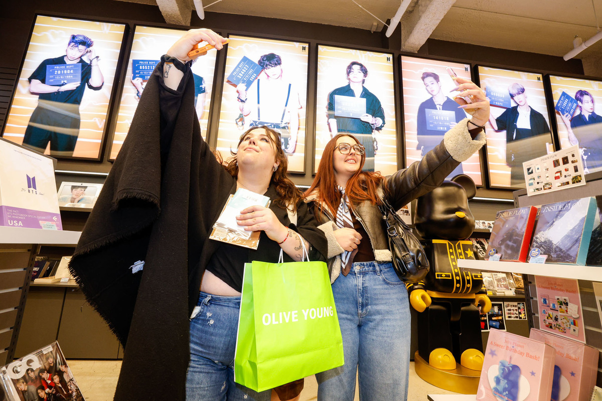 백화점·면세점·편의점·호텔 등 유통업계에선 ‘BTS 특수’를 겨냥한 마케팅이 한창이다. BTS를 모델로 쓴 기업들이 단연 눈길을 끈다. 신세계백화점은 ‘BTS 더 컴백 라이브:아리랑’ 공식 파트너사로 국내 유통사 중에서는 유일하게 BTS 팝업 스토어를 운영한다. 본점 더 헤리티지 4층 팝업스토어는 주말 예약이 조기 마감됐다. 신세계면세점에 따르면 지난 11∼17일 명동점 ‘K-웨이브 존’의 BTS 굿즈 매출은 전주 대비 190% 증가했고, 관광객이 몰린 14일 매출은 세 배 이상 뛰었다. 현대백화점 동대문점에서 진행 중인 ‘K팝 컴백 페스타’와 롯데백화점 잠실점의 ‘키네틱 그라운드’ 팝업스토어도 공연장과 떨어져 있지만 앨범과 굿즈를 찾는 팬들 방문으로 특수를 누리고 있다.