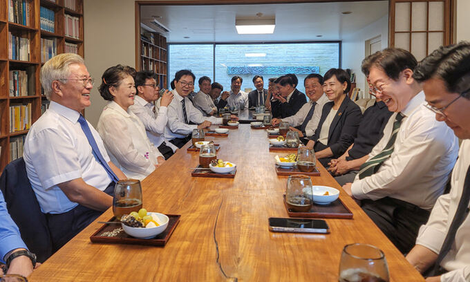 이재명 대표와 문 전 대통령은 이날 한목소리로 통합을 강조했다. 이 대표는 문 전 대통령을 향한 수사에 대해 “지금 정부가 하고 있는 작태는 정치적으로도 법리적으로도 도저히 이해가지 않는 정치 탄압”이라고 평했고 문 전 대통령은 “기본적으로 나나 가족이 감당할 일이지만 당에게 고맙게 생각한다. 당당하게 강하게 임하겠다”고 화답했다고 조승래 수석대변인이 말했다. 문 전 대통령은 이 대표에게 “그 어느 때보다 강하고 일사불란한 지도부가 재집권을 위해 적극적으로 활동했으면 좋겠다”고 정권 재창출을 주문하며 “지지층 기반을 넓혔으면 좋겠다”고도 조언했다고 조 수석대변인이 설명했다.