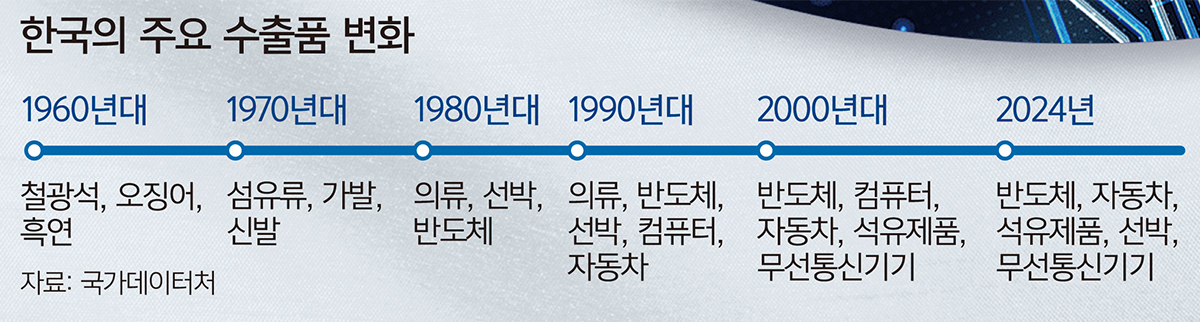 특히나 성장모델의 부재는 뼈아픈 대목이다. 1980년대 주력 수출품이었던 반도체, 자동차, 석유제품, 선박, 휴대전화, 철강 등은 지금도 한국의 주력 수출품으로 큰 변화가 없다. 그사이 미국과 중국 중심의 인공지능(AI) 경쟁 구도가 조성됐지만, 한국은 여전히 제조업 기반의 경제모델에서 더 나아가지 못하는 형국이다.