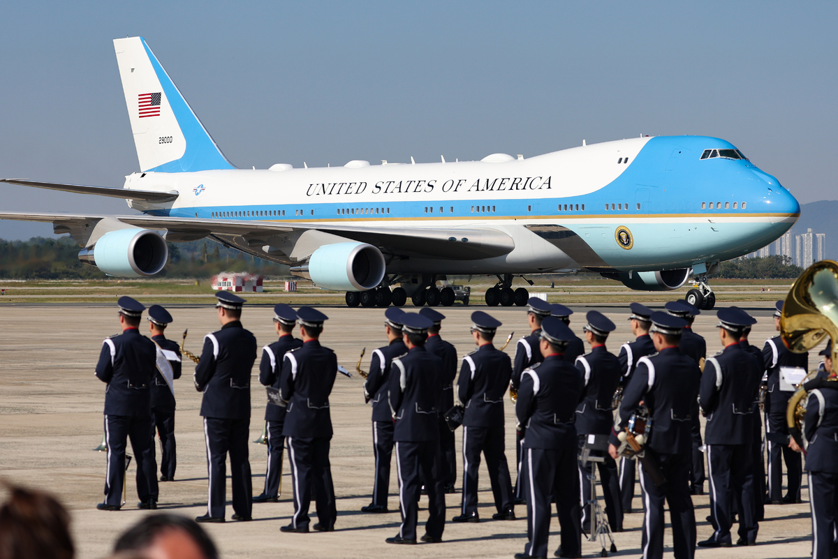 트럼프 대통령은 이날 일본 방문 일정을 마친 뒤 도쿄에서 대통령 전용기 에어포스원을 타고서 오전 11시32분께 김해국제공항에 도착했다.