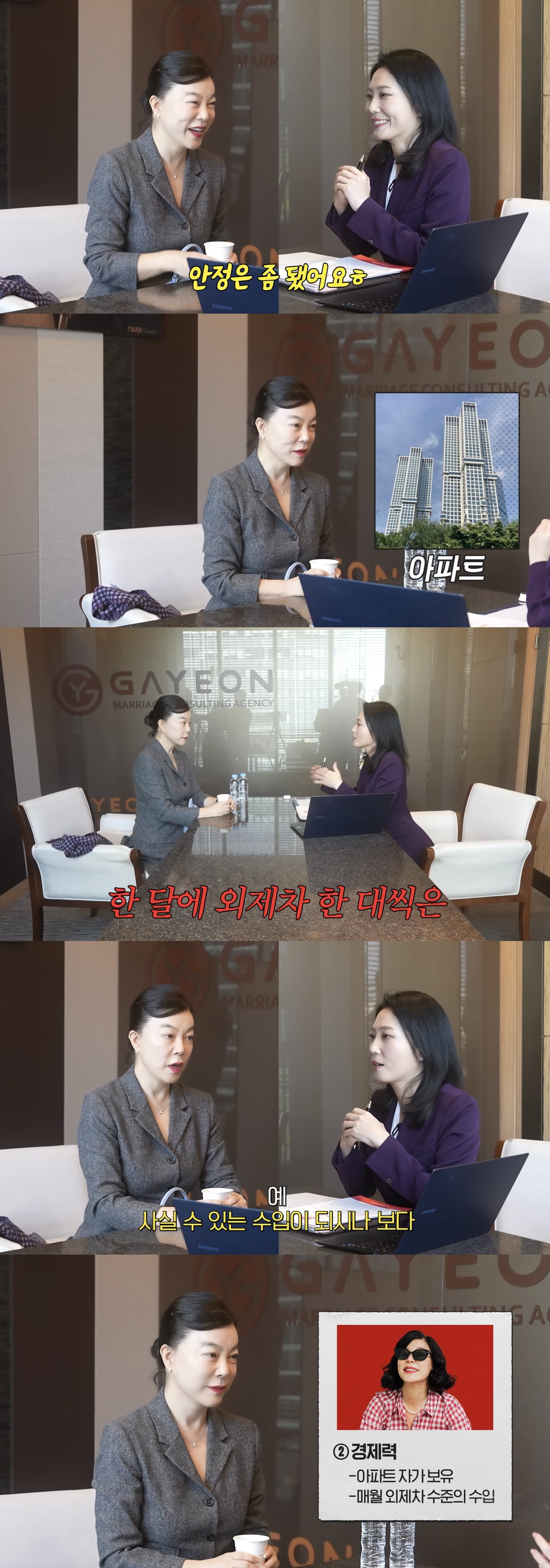 방송인 최화정이 결혼을 앞두고 결혼정보회사를 찾아 자신의 재력과 이상형을 솔직히 털어놨다.