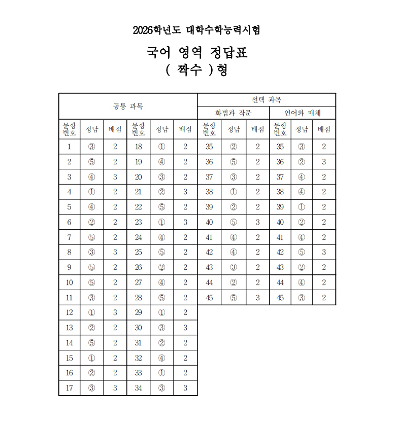 13일 시행된 2026학년도 대학수학능력시험(수능) 국어영역은 2025학년도와 비슷한 난이도로 출제된 것으로 분석됐다.