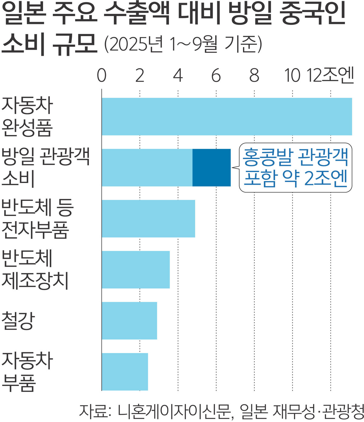 중국인 상대 시장규모가 연 2조엔(약 19조원) 규모에 달하는 여행업계가 가장 먼저 타격을 받고 있다. 이날 아사히신문에 따르면 중국인에게 관광상품을 판매하는 일본 도쿄 분쿄구의 여행사 RCC는 전날 교통편, 숙박, 음식점, 가이드 등 일정을 조정하느라 애를 먹었다. 12월 초까지 예정된 단체관광 약 30건, 내년 1∼2월로 예정된 일본 유학 사전 탐방 프로그램 9건의 예약이 취소돼서다.