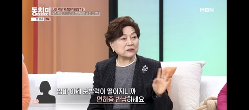 드라이브로 기분 전환을 했었다는 김용림은 "딸이 '엄마 이제 순발력이 떨어져서 안 되니까 면허증 반납하라'고 하더라"고 섭섭해했다.
