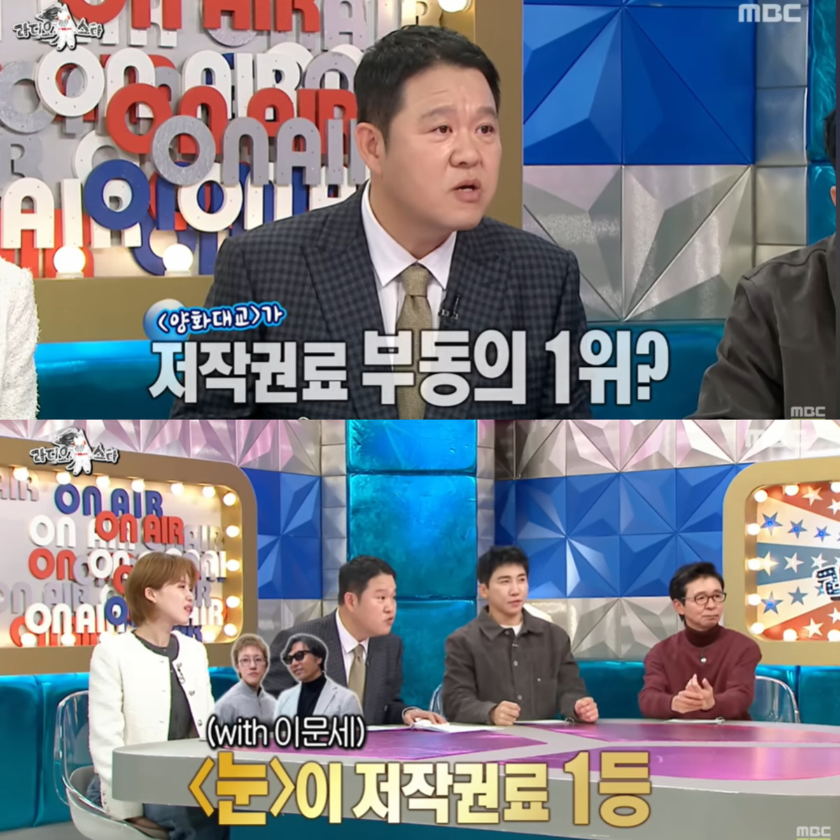 김구라는 “양화대교가 예전보단 조금 덜 들리는데, 저작권료 부동의 1위 자리를 차지하고 있냐”고 물었다. 자이언티는 “조금 왔다갔다 하지만 ‘눈’이 저작권료 1등이다”고 말해 놀라움을 자아냈다.