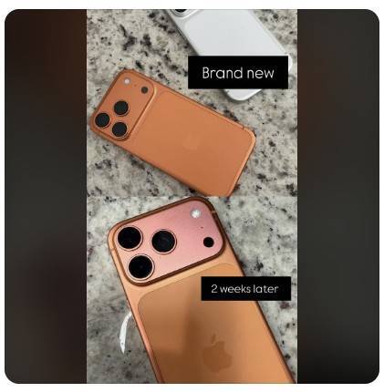 애플이 지난 9월 출시한 아이폰17 프로·프로맥스 일부 제품에서 변색이 발생하고 있다는 지적이 잇따라 제기되고 있다.