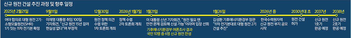 이어 이 대통령도 21일 신년기자회견서 “필요하면 안전 문제를 포함해서 (원전 신설을) 검토할 수 있다”며 “마치 (원전이) 이념 전쟁의 도구처럼 인식되는 것은 바람직하지 않다고 생각한다”고 전향적인 입장을 내놨다.