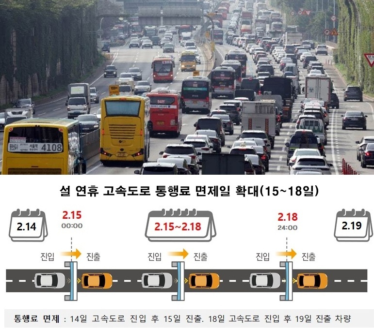 정부가 설 명절을 맞아 전국 고속도로 통행료를 나흘간 전면 면제한다.