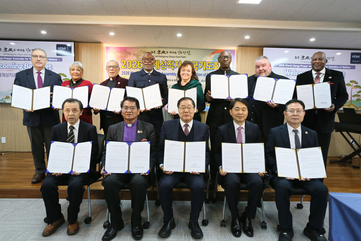 세계성직자협의회(WCLC) 등이 주최하는 ‘2026 세계성직자 구국기도회’ 참석차 내한한 세계 교계 지도자 70여 명 중 루온 라우스 주교를 포함한 대표단은 26일 서울구치소를 방문해 구금 157일째를 맞은 한학자 총재를 접견했다.
