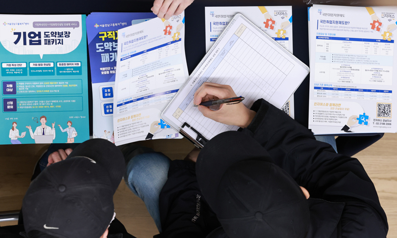 서울 강남구 강남 취·창업허브센터에서 열린 '취업박람회'를 찾은 구직자들이 국민취업지원제도 상담을 받고 있다. 연합뉴스