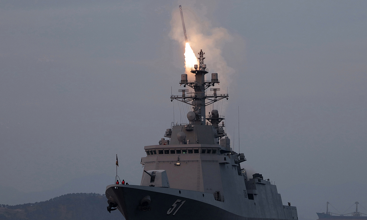 김정은 북한 국무위원장이 화상으로 참관한 가운데 지난 10일 구축함 최현호에서 순항미사일 시험발사를 진행했다고 조선중앙통신이 11일 보도했다. 이날 김 위원장의 딸 주애도 함께 화상으로 시험발사를 참관했다. 평양=조선중앙통신·연합뉴스
