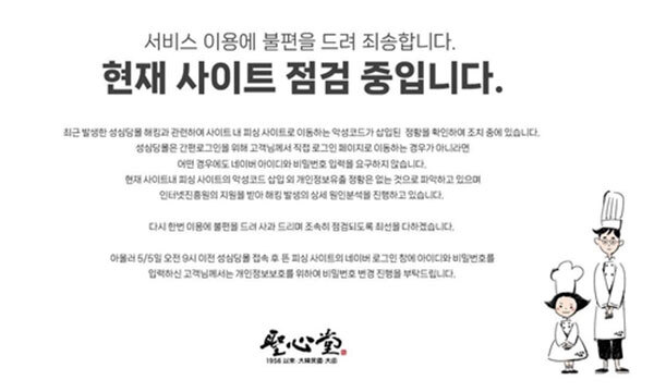 성심당은 지난해 5월에도 온라인 쇼핑몰인 '성심당몰'에 피싱 사이트로 이동하는 악성코드가 삽입되는 해킹을 당한 바 있다.